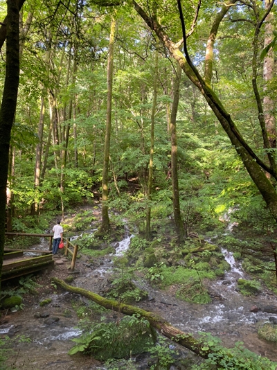 栃木県の塩谷町という場所に、過去、「日本名水100選」で1位になったことのある名水が湧いている場所があると聞き、見に行ってきました。冒頭の写真は湧水地をバックに。