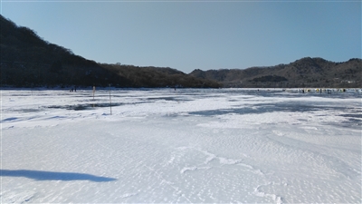 見事に凍ってました。恐る恐る湖面を歩くも、50メートルくらい歩いたところで滑る滑る。危険を感じて転倒する前に退散します。